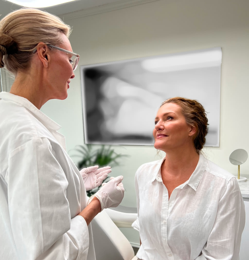 På AESTHETICARE kombinerar vi medicinsk expertis och avancerad teknik för att skapa skräddarsydda skönhetsbehandlingar som framhäver din naturliga utstrålning. Med över 13 års erfarenhet fokuserar vi på att ge varje kund individuella, harmoniska resultat. Vi använder ultraljud för att säkerställa precision i våra injektionsbehandlingar, vilket gör att varje behandling är noggrant anpassad efter dina unika behov och önskemål. Våra hudbehandlingar är handplockade för att leverera synliga och effektiva resultat som framhäver din naturliga skönhet. SOFWAVE™ – NATURLIGT LYFT UTAN KIRURGI Sofwave™ ger ett naturligt lyft och föryngring utan behov av kirurgi. Behandlingen är perfekt för att strama upp huden på ansikte, ögonbryn, käklinje, hals, samt på kroppens områden som mage, insida lår och gäddhäng. Sofwave™ går utmärkt att kombinera med våra andra injektionsbehandlingar såsom profhilo och sculptra. PRECISA BEHANDLINGAR MED ULTRALJUD Med hjälp av Clarius ultraljud kan vi exakt se och kartlägga behandlingsområden i realtid, vilket gör att vi kan placera injektioner med maximal precision. Detta ökar säkerheten och ger mer långvariga, effektiva resultat. SMÄRTBEHANDLINGAR MED BOTOX Vi använder Botox för att behandla smärtor från tandgnissling, huvudvärk och spända muskler. Med ultraljud kan vi säkerställa precis placering, vilket ger effektiv smärtlindring och långvarig effekt. VIKTIGT ATT VETA Registrerade hos IVO & har patienskadeförsäkring hos Folksam. - Konsultation krävs minst 48 timmar innan behandling om det har gått mer än 6 månader sedan senaste behandling. - Avbokning: Minst 48 timmar innan bokad tid. - Uteblivande debiteras med 100% av behandlingskostnaden. - Kliniken är djur- och barnfri för en lugn miljö. OBS: Åldersgräns 18 år gäller för alla våra behandlingar. Injektions och hudklinik i hjärtat av Östermalm. 13 plus års erfarenhet & specialiserad på att leverera naturliga resultat. Smärtbehandlingar med anti rynk / muskelrelaxerande mot tandgnissling, tandpressning, migrän samt spända axlar. Utbildningar för vårdpersonal. Grundare av Aestheticare sedan 2012. Sadie har 13 + års erfarenhet av branschen. KI-utbildad tandläkare samt internationellt utbildad injektionsbehandlare med fokus på att uppnå naturliga resultat genom att kombinera känsla för precision och detaljer med vetenskap. Specialiserad på hud- & injektionsbehandlingar. Erbjuder avancerad undersökning med ultraljud för ökad säkerhet samt precision. Mellan 2015 till 2019 var Sadie styrelseledamot i Rådet för Estetiska Behandlingar i Sverige (REBS). Under denna tid fick Sadie en större förståelse & respekt för kunden i skönhetsdjungeln. För Sadie har trygghet en stor betydelse och hon har därför genomgått omfattande utbildningar i komplikationshantering, vilket säkerställer att hon är väl rustad att hantera de potentiella problem som kan uppstå under estetiska behandlingar. Sadie har också varit "trainer" och erbjuder kurser i injektionsbehandlingar tills sina